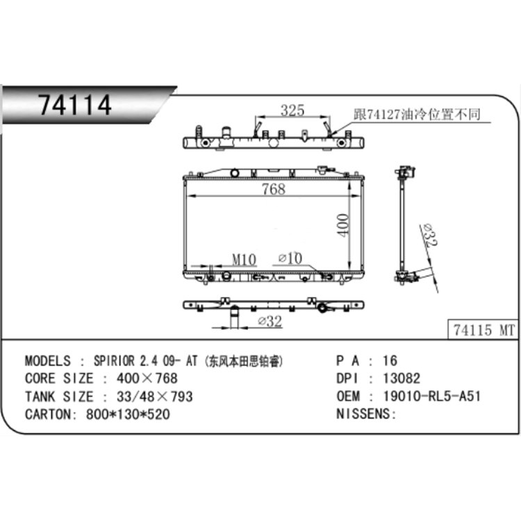 1. Le radiateur automatique Honda 09 Spirior est développé en utilisant le moule d'origine et répond à l'assemblage individuel de la voiture d'origine.
